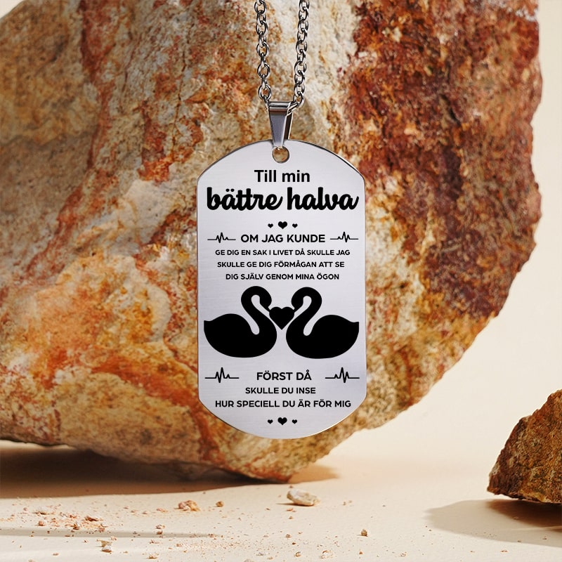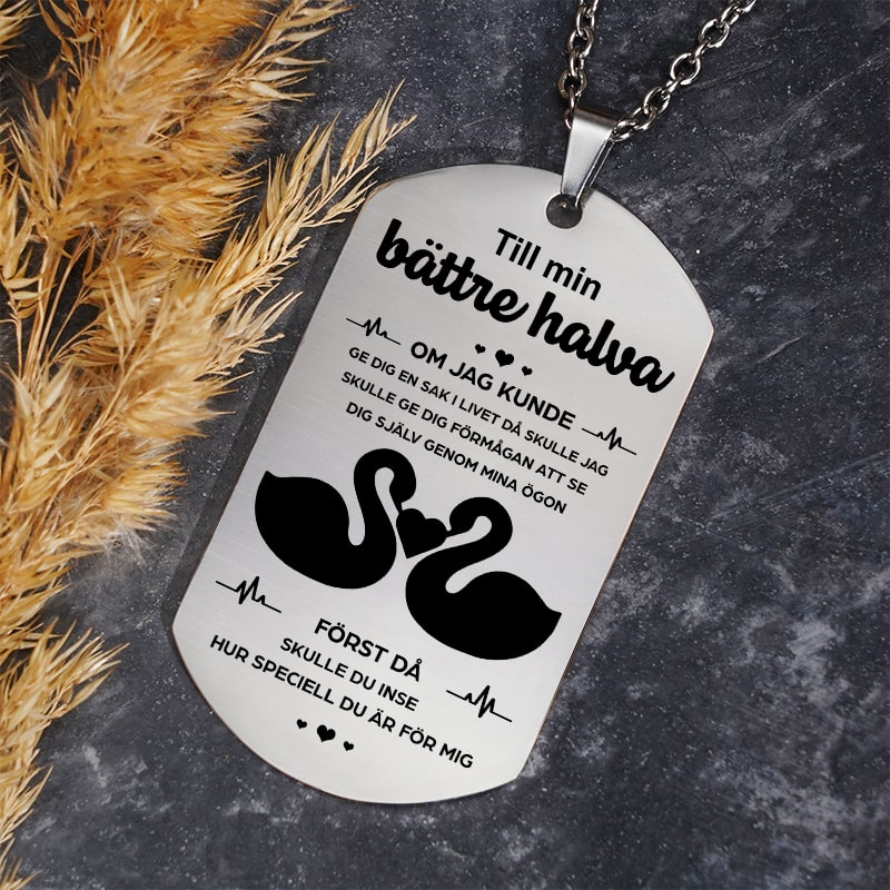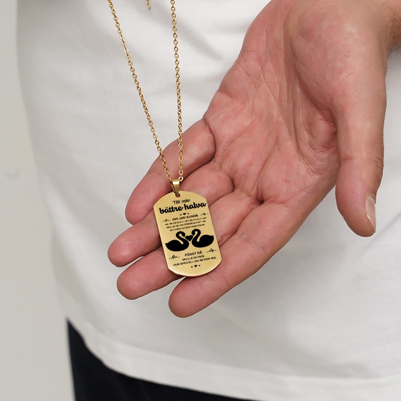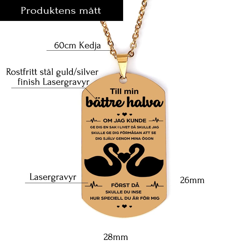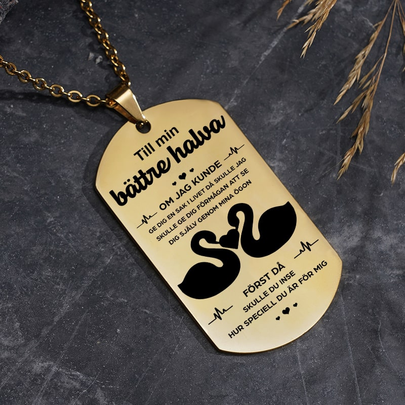 • Varje stycke är gjort av högkvalitativt stål med silver- och guldplätering. Vi använder en högkvalitativ laser för att bevara inskriptionens skönhet, finhet och klarhet.