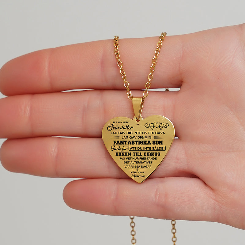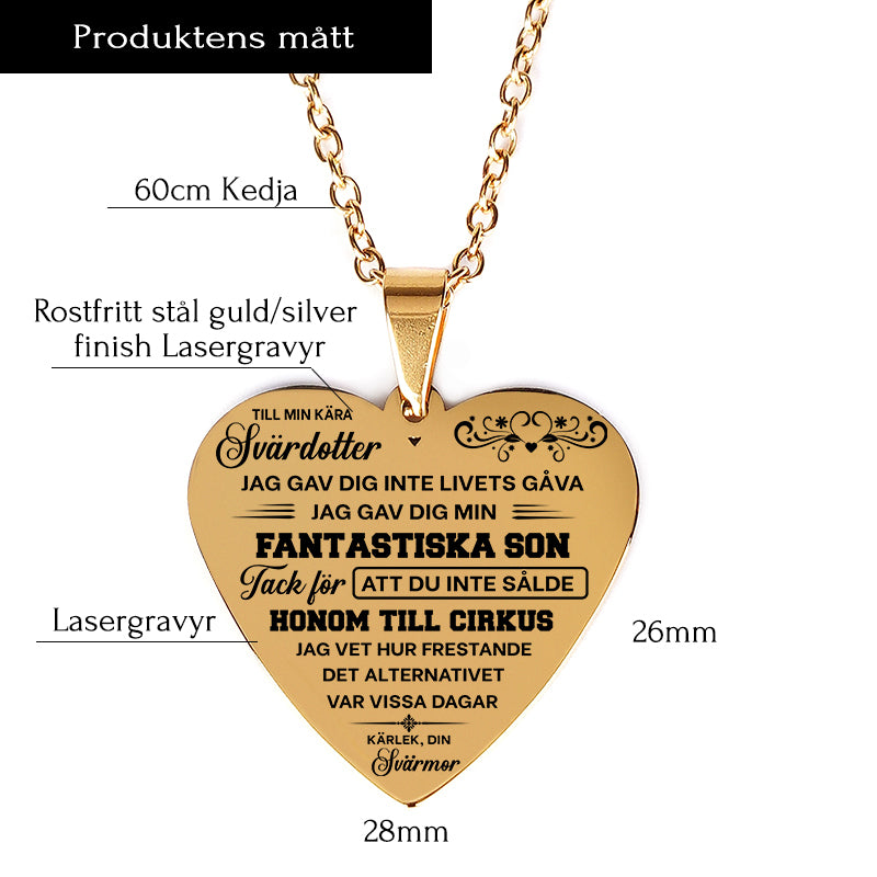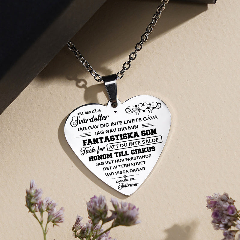 Hjärthänge graverat från svärmor till svärdotter - Jag är så stolt över dig