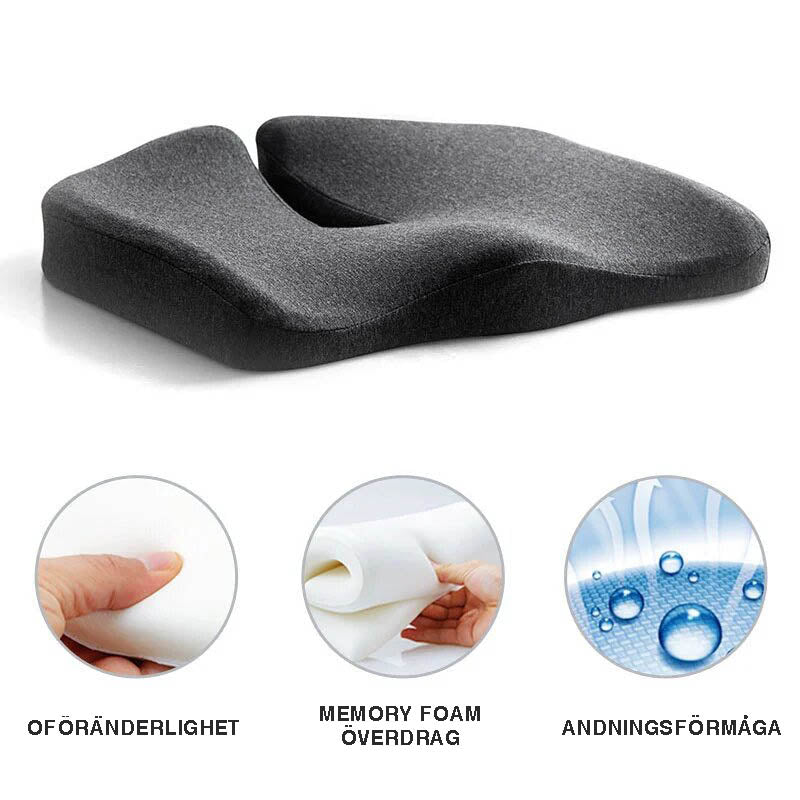Kudden är tillverkad av kvalitetsbomull vilket gör den supermjuk och den ergonomiska designenhjälper din höft och rätar ut din rumpa och främjar blodcirkulationen. Med så mycket komfortkan du sitta hur länge du vill, superavslappnad och utan att skada ryggraden.