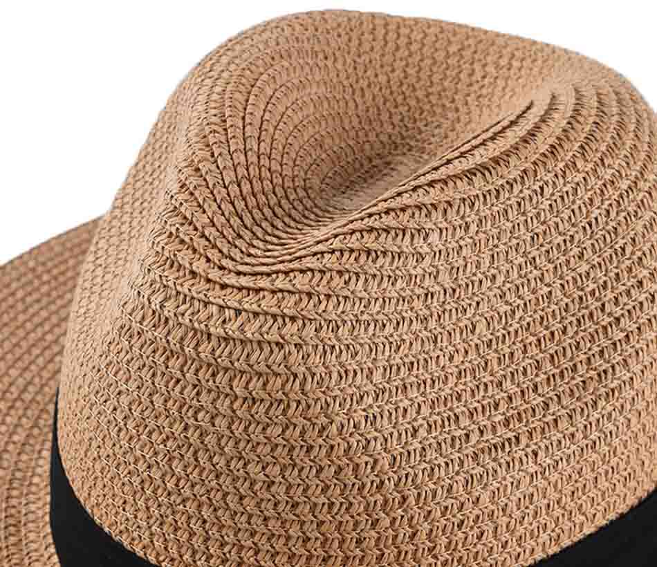• Handgjord halmhatt är en modern hatt med ett medelstort brätte, andningsbart svettband med ett grosgrain hattband eller läderhattband i klassiska färger. Randen har en tråd för att behålla sin form.