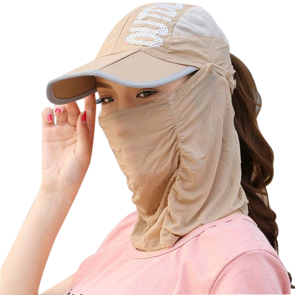 Denna ansiktssolskyddshatt kan ge ett 360 graders skydd mot solljus och UV-strålar. Tyget är lätt, tunt, andas och bekvämt att röra vid. Perfekt för sommaren, den täcker ditt ansikte och nacke och förhindrar solbränna. UV-skyddshatten är lämplig för många tillfällen, som camping, vandring, fiske och så vidare. Hatten med halsrem är utformad med elastiskt band, lämpligt för olika behov.