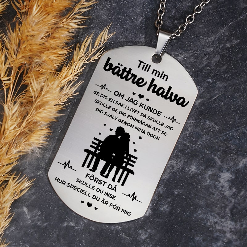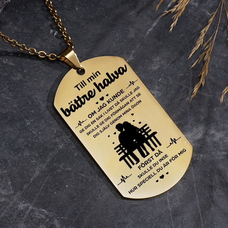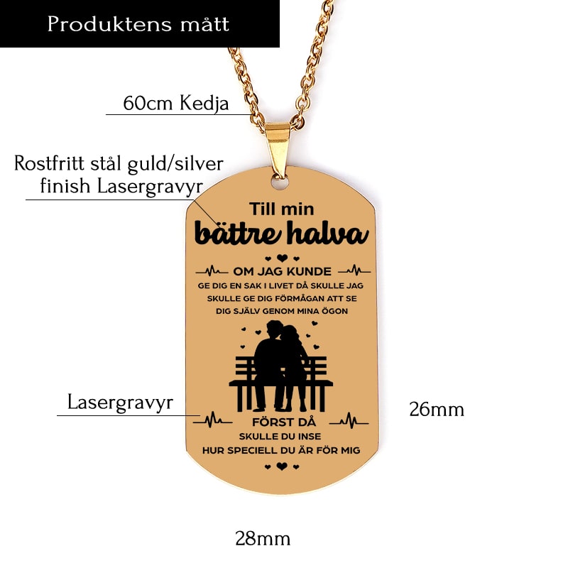• Varje stycke är gjort av högkvalitativt stål med silver- och guldplätering. Vi använder en högkvalitativ laser för att bevara inskriptionens skönhet, finhet och klarhet.