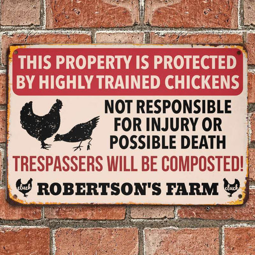 Highly Trained Chickens - Gift for a Farmer - Personalized Custom Metal Sign