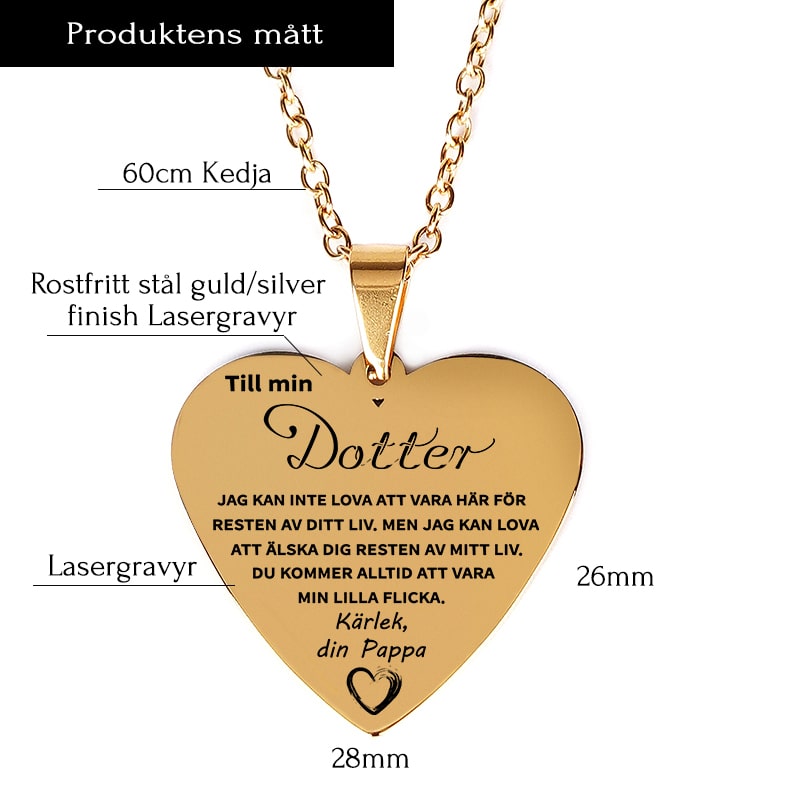Hjärthänge graverat från far till dotter - Jag är alltid nära