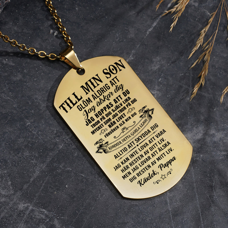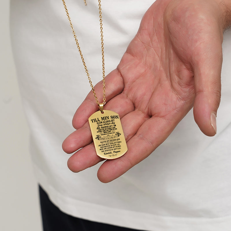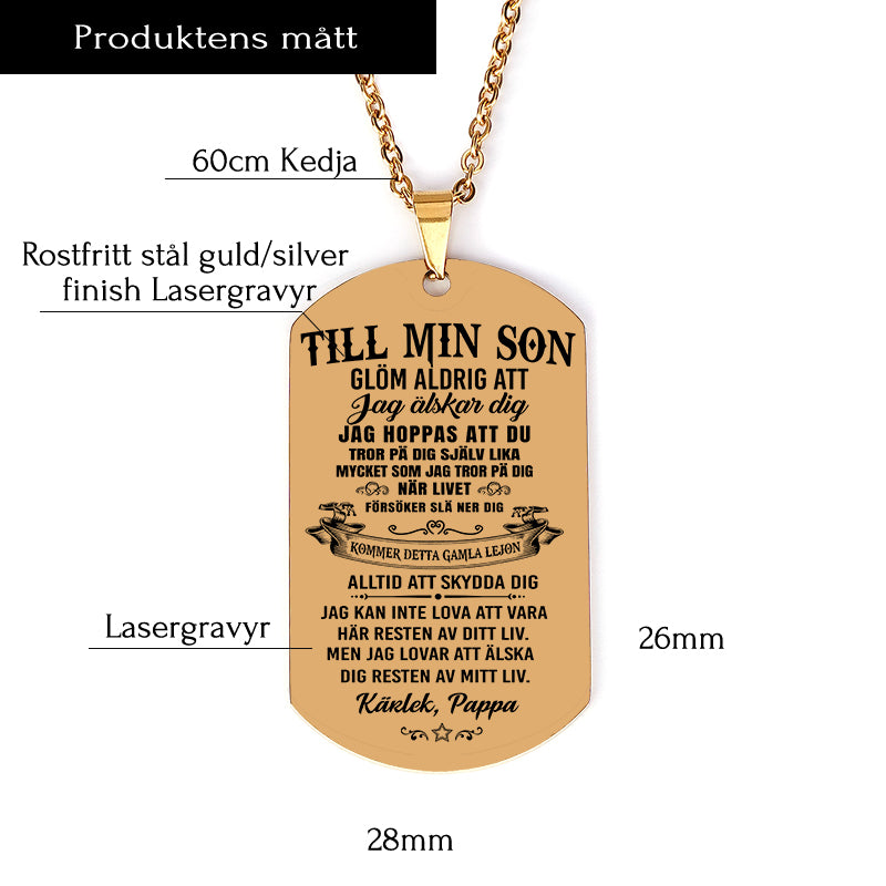 • Varje stycke är gjort av högkvalitativt stål med silver- och guldplätering. Vi använder en högkvalitativ laser för att bevara inskriptionens skönhet, finhet och klarhet.